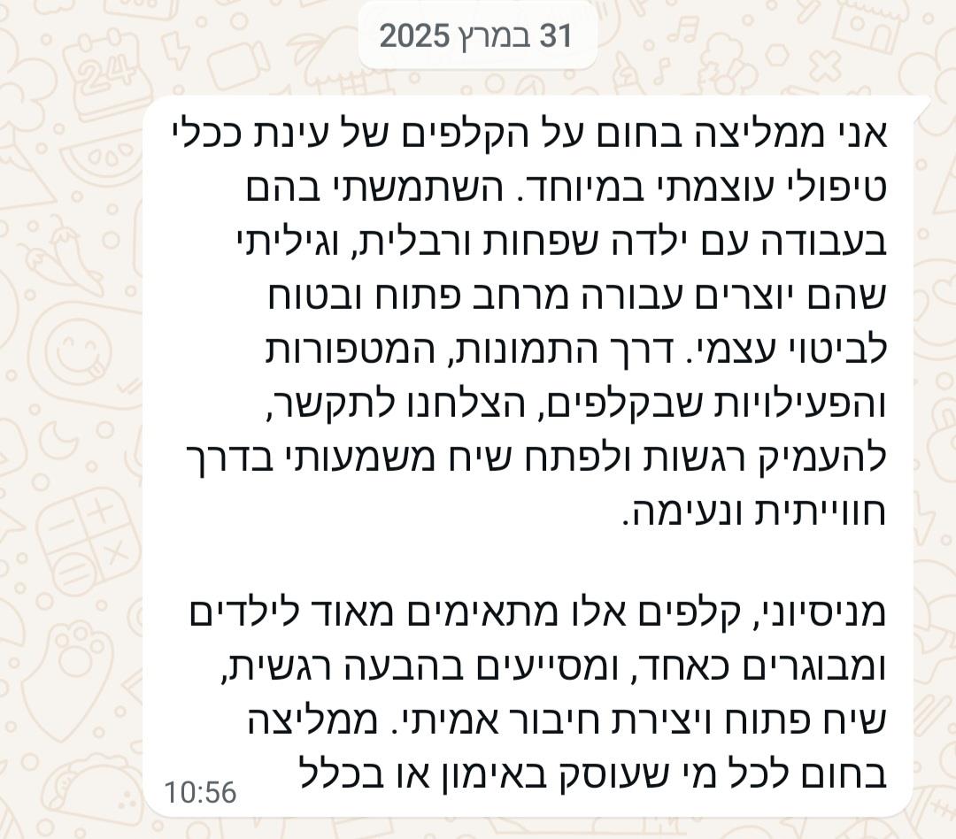 מה בערכה? ✔ 52 קלפים מאוירים + חוברת עם הסברים ✔ רעיונות להפעלות והתייחסות לכל שלבי התהליך ✔ רכישת הערכה כוללת משלוח לנקודת חלוקה קרובה לביתך