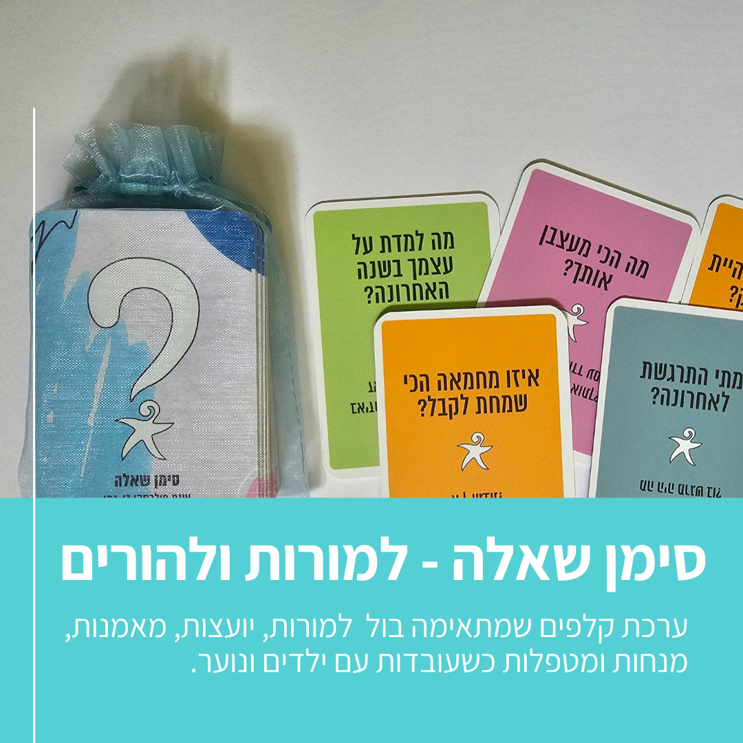 מה בערכה? ✔ 50 קלפים עם שאלות (שאלה מרכזית+שאלות המשך)✔ הוראות, הנחיות והצעות לפעילות ✔ רכישת הערכה כוללת משלוח לנקודת חלוקה קרובה לביתך